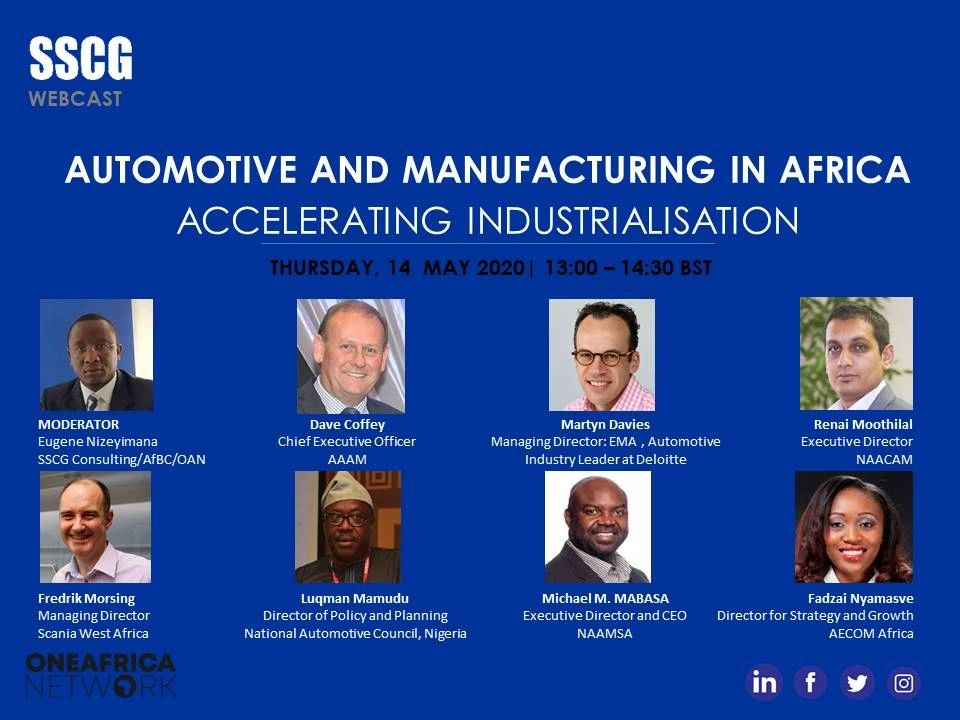 Join us for SSCG Webcast: Automotive and Manufacturing in Africa - Accelerating Industrialisation live online panel discussion on Thursday, 14 May 2020 between 13:00 - 14:30 BST to gain latest update, perspectives and opportunities across the industries and region.